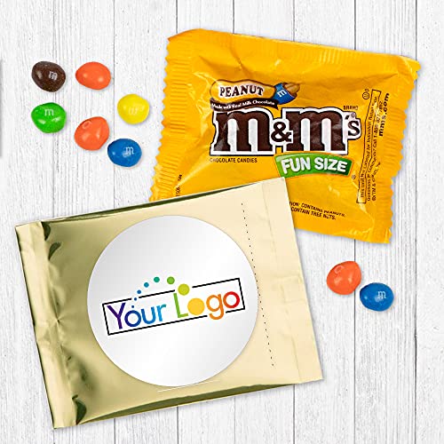 Amazon Com 50ct Promotional Items With Company Logo Candy Peanut M M S Fun Size Giveaways 50 Pack Gold Foil Fully Assembled Bulk Candy With Brand 3x4 In Grocery Gourmet Food